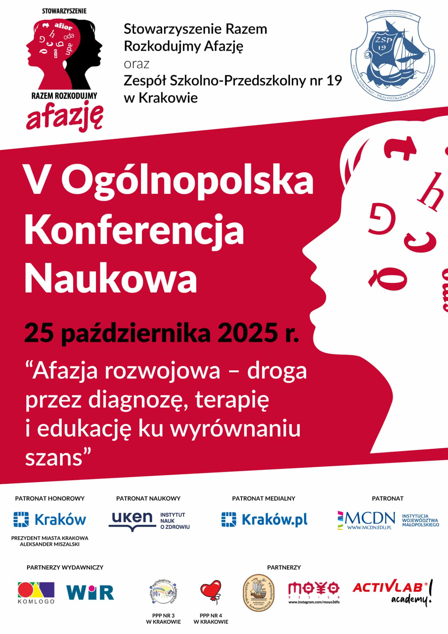 W imieniu Stowarzyszenia Razem Rozkodujmy Afazję oraz Zespołu Szkolno-Przedszkolnego w Krakowie mamy zaszczyt zaprosić Państwa na V Ogólnopolską Konferencję "Afazja rozwojowa - droga przez diagnozę, terapię i edukację ku wyrównaniu szans. Zapraszamy do rejestracji! →
